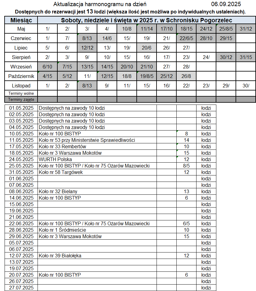 Tu sprawdzisz ilość dostępnych łodzi w naszej stanicy