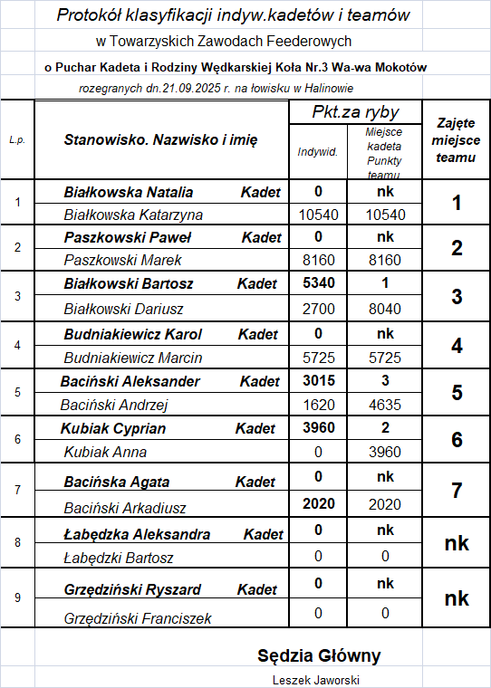 Wśród Kadetów najlepsi okazali się Bartek, przed Cyprianem i Aleksandrem. Gratulujemy !!!